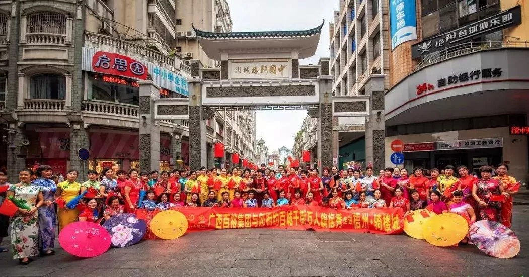 為慶祝新中國成立70周年,配合全球(中國)旗袍總會(huì)發(fā)起的“百城千街萬人旗袍秀”暨“創(chuàng)吉尼斯世界紀(jì)錄活動(dòng)”,向全世界展示中華傳統(tǒng)文化和東方女性之美,梧州市旗袍協(xié)會(huì)、梧州市華服文化促進(jìn)會(huì)、梧州市老年開放大學(xué)藝術(shù)團(tuán)在梧州市婦聯(lián)的指導(dǎo)下,在廣西百裕集團(tuán)的冠名支持下,于10月7日上午9時(shí)走進(jìn)騎樓城,開展“百城千街萬人旗袍秀”暨“創(chuàng)吉尼斯世界紀(jì)錄”梧州站展演活動(dòng)。