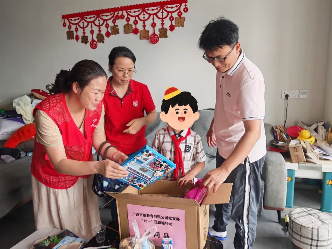 5月30日,由百裕教育黨支部代表帶著精心準(zhǔn)備的物資與溫暖關(guān)懷,走進(jìn)貧困兒童家庭,為孩子們送去節(jié)日的祝福與切實(shí)的幫助,以愛心為他們的夢想之路添磚加瓦。