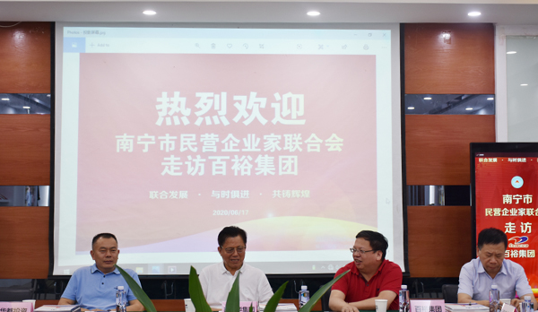 南寧市民營企業(yè)家聯(lián)合會始建于1992年4月,是南寧市成立最早的商會之一。會員行業(yè)涵蓋房地產(chǎn)開發(fā)、融資擔保、建材、制造、礦業(yè)、餐飲、農(nóng)業(yè)、五金機電、商貿物流等多個行業(yè),市場已拓展到美國、加拿大、日本、韓國、東盟各國等地。百裕集團董事長許曲煌做為聯(lián)合會執(zhí)行會長,認真履行會員企業(yè)的義務和工作,積極與企業(yè)會員企業(yè)交流學習。此次走訪活動中,各企業(yè)家參觀了百裕集團產(chǎn)品展示廳、觀看了集團各分公司、生產(chǎn)中心、研發(fā)中心等相關視頻短片,并在會議室進行了交流會議。