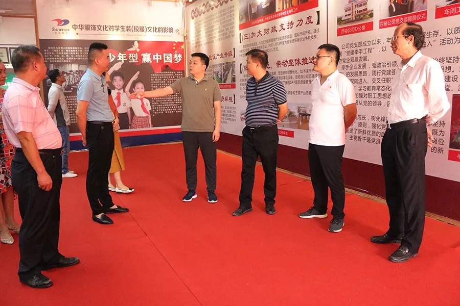 陸鵬處長一行參觀了學(xué)生裝文化展示中心、生產(chǎn)車間和百裕實業(yè)黨群服務(wù)中心,詳細了解了公司生產(chǎn)經(jīng)營發(fā)展情況,聽取了近年來加強黨建引領(lǐng)公司發(fā)展工作匯報,并對進一步加強黨員隊伍建設(shè),建好用好公司黨建陣地,充分發(fā)揮黨員先鋒模范帶頭作用,增強員工凝聚力、戰(zhàn)斗力促進公司高質(zhì)量發(fā)展作具體指導(dǎo)。