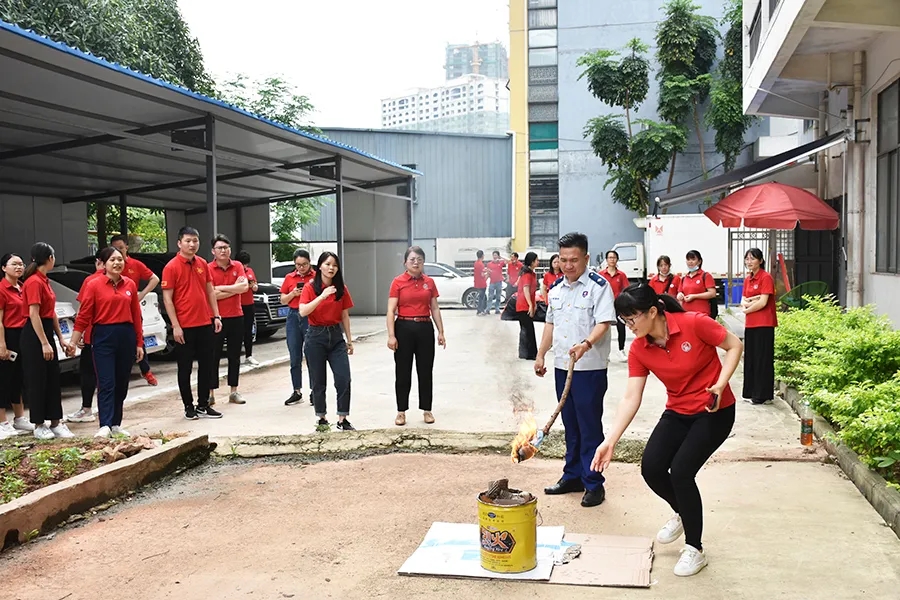 徐教官還重點向大家講解了滅火器的使用要點以及注意事項,并手把手的指導大家如何使用滅火器。大家根據(jù)方法,一絲不茍地完成了干粉滅火器滅火的演練過程。