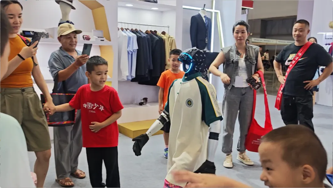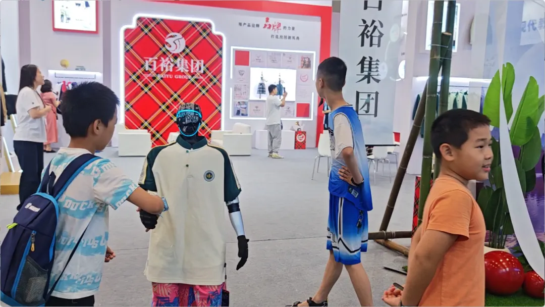 展會(huì)期間,還有智能機(jī)器人身著百裕集團(tuán)校服,在展館內(nèi)巡游并與觀眾互動(dòng)。這一創(chuàng)新場(chǎng)景,成為了全場(chǎng)矚目的焦點(diǎn)。當(dāng)傳統(tǒng)校服文化與前沿AI機(jī)器人技術(shù)相遇,碰撞出的不僅是視覺上的新奇體驗(yàn),更是對(duì)“科技賦能教育,裝備服務(wù)未來(lái)”理念的具象化表達(dá)。
