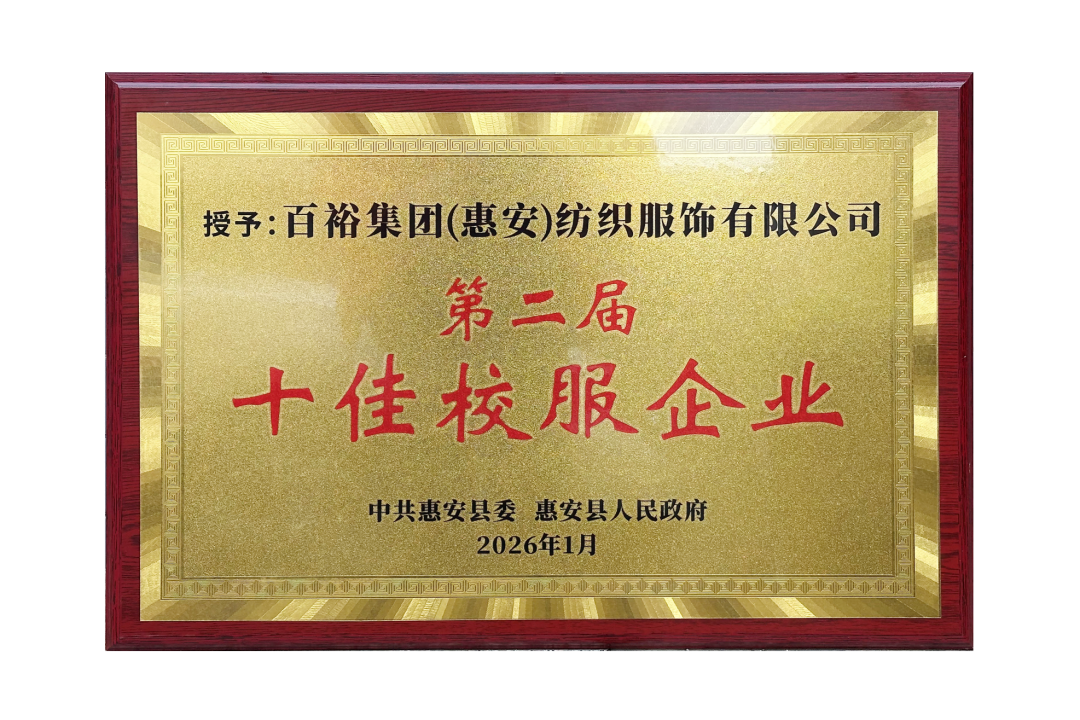 在此次活動中,百裕集團憑借卓越的研發(fā)實力、過硬的產(chǎn)品品質與深厚的行業(yè)影響力,榮獲“第二屆十佳校服企業(yè)”稱號 ,充分彰顯了行業(yè)與政府對集團在校園服飾領域深耕細作的高度認可。