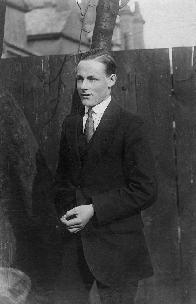 20世紀,攝影圖,穿西服的男人。這個時期的領帶已經出現(xiàn)了各種花色和不同的紋路。