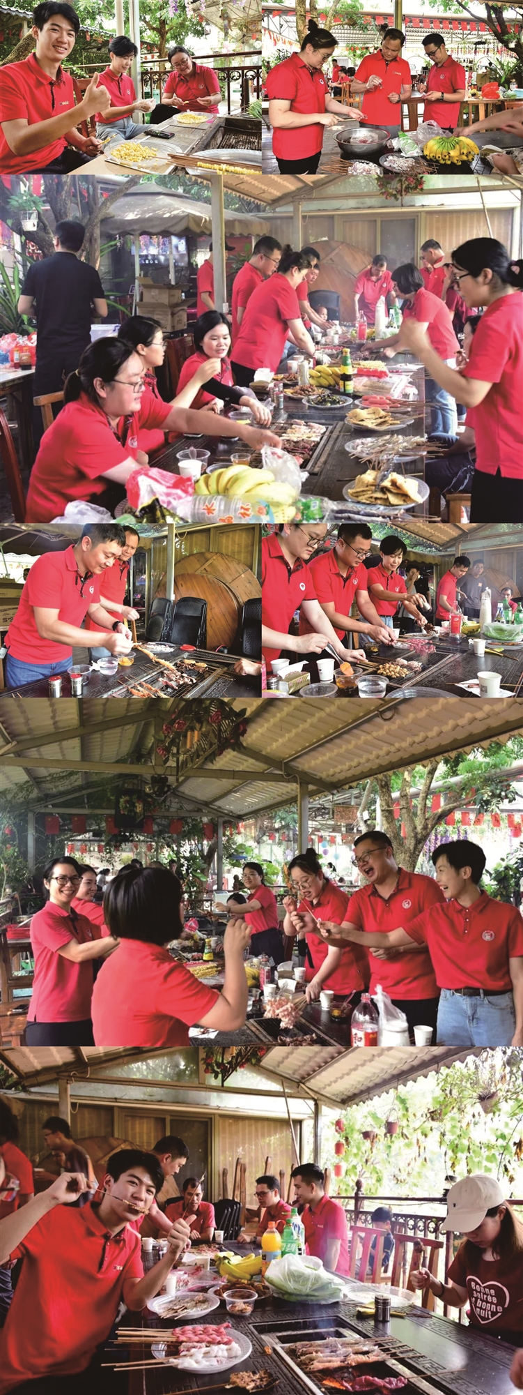 活動(dòng)在農(nóng)莊開(kāi)展,公司提前給員工準(zhǔn)備了酸辣的鳳爪,爽脆的青瓜,涼拌木耳等,都引誘著同事們饑腸轆轆的胃,讓人垂涎。在燒烤過(guò)程中員工們互相配合洗菜、串肉、生火、加炭,場(chǎng)面好不熱鬧。大家都拿出了“十八般武藝”,充分展示出自己的動(dòng)手能力和美食鑒賞能力,在制作和分享美味的過(guò)程中,每個(gè)人笑容滿面,洋溢著喜悅的氣氛。